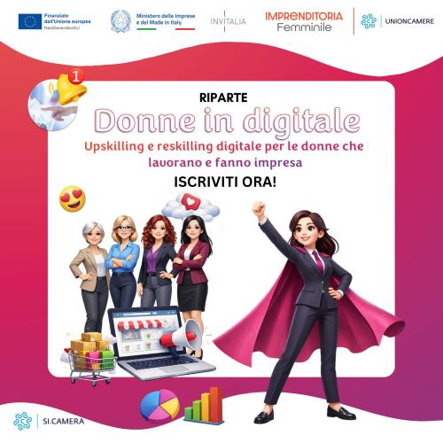 Sito iniziativa: https://www.unioncamere.gov.it/comunicazione/primo-piano/donne-digitale-riaprono-le-iscrizioni link esterno