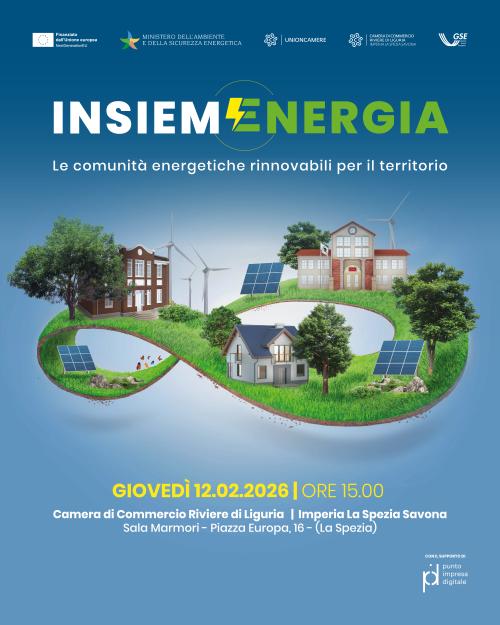 La Camera di Commercio Riviere di Liguria organizza l’evento “InsiemEnergia – Una Roadmap per imprese, enti locali e territorio”, promosso da Ministero dell’Ambiente e della Sicurezza Energetica, GSE – Gestore dei Servizi Energetici e Unioncamere.