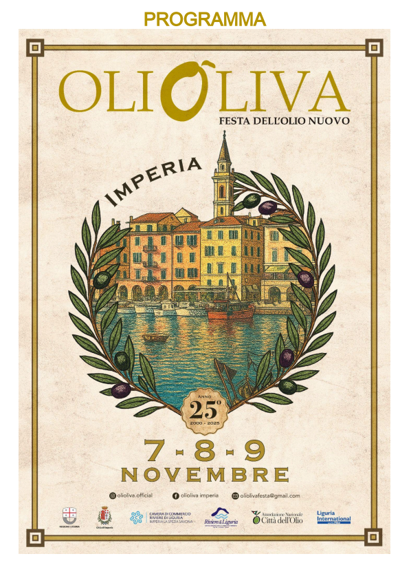 Dal 7 al 9 novembre 2025 Imperia ospita la venticinquesima edizione di Olioliva, la manifestazione dedicata all’olio extravergine d’oliva e alle eccellenze agroalimentari liguri