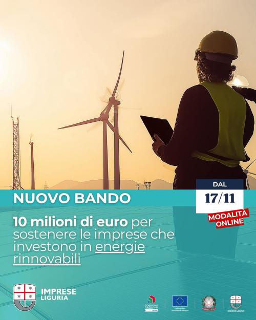 Fonti rinnovabili - bando incentivi per imprese da Regione Liguria - domande dal 17 novembre 2025