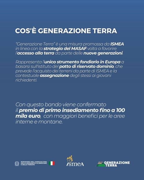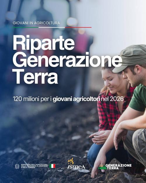Domande dal 22 aprile al 19 giugno 2026 sul portale ISMEA: ismea.it/Startup/GenerazioneTerra link esterno
